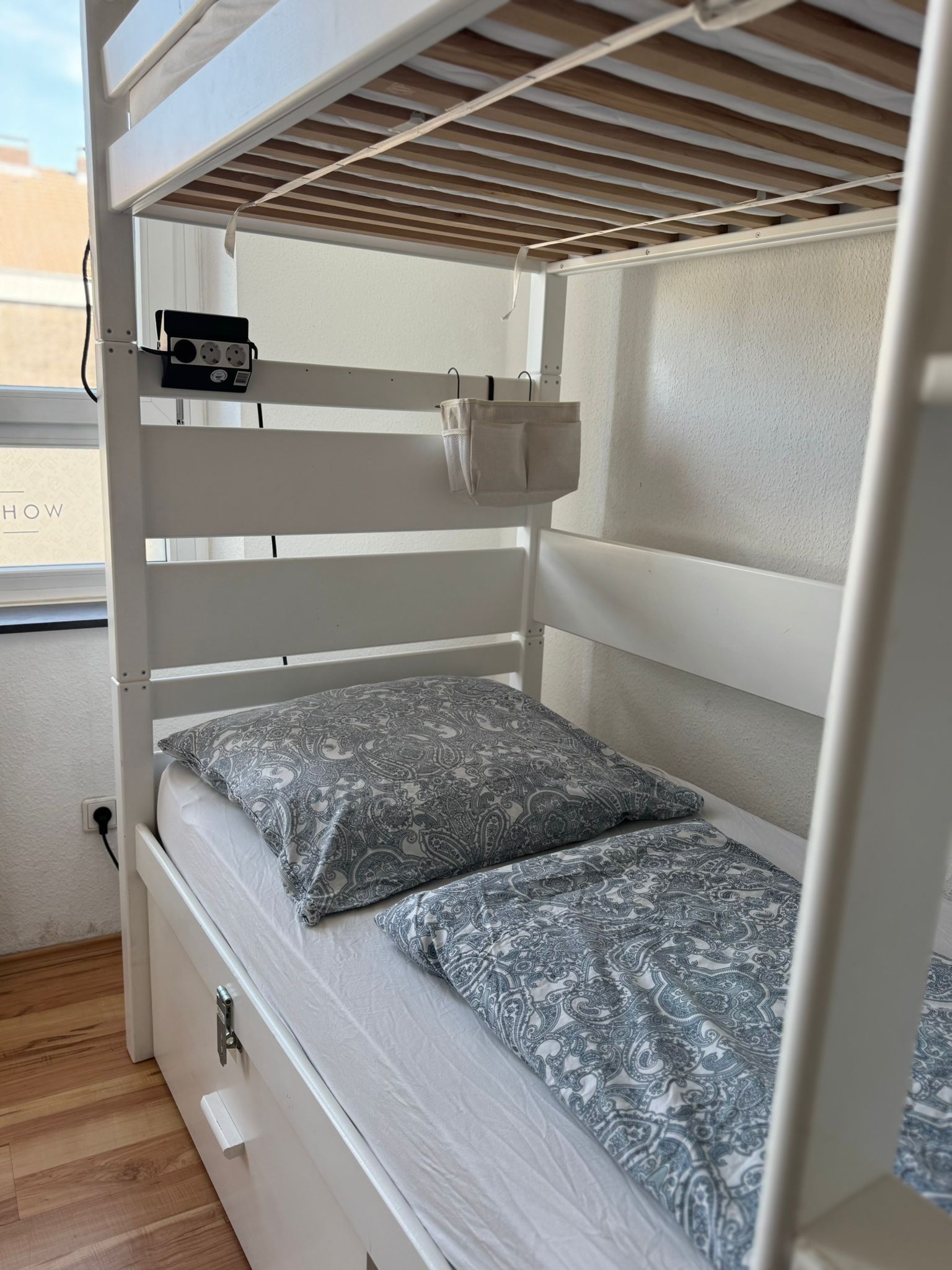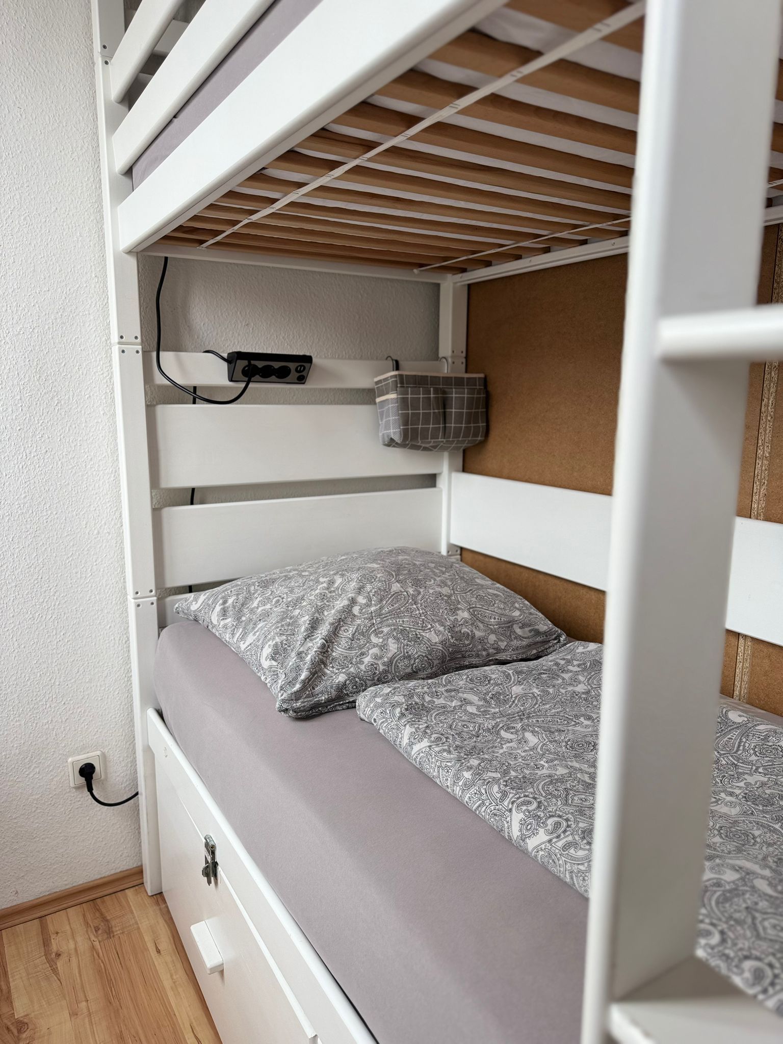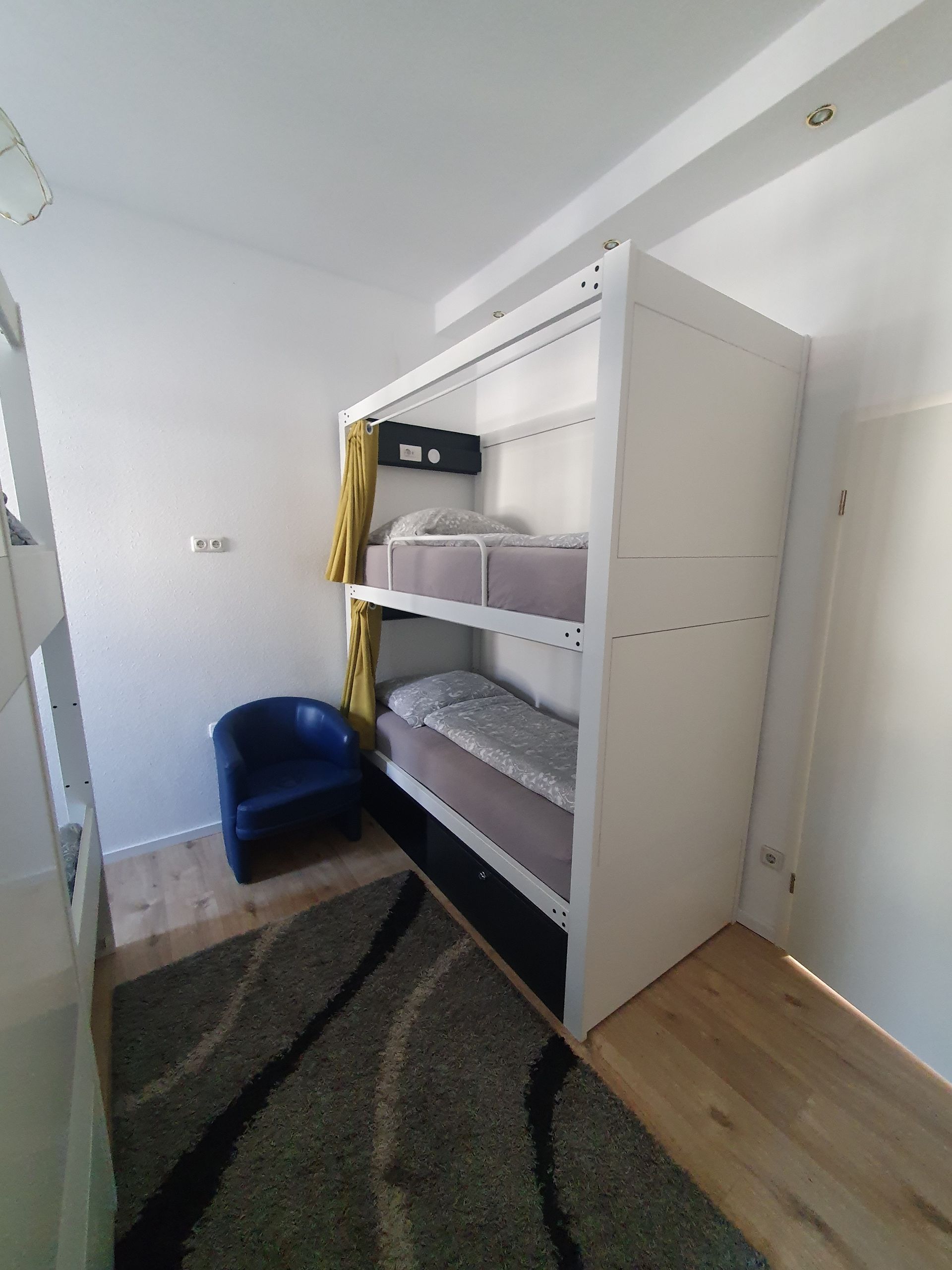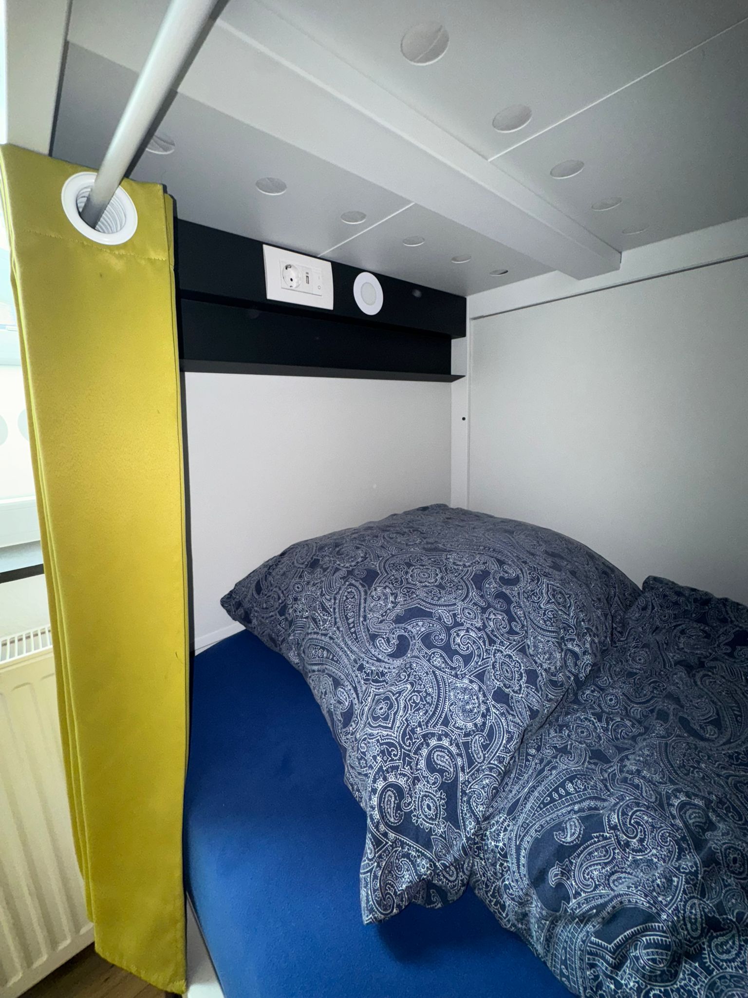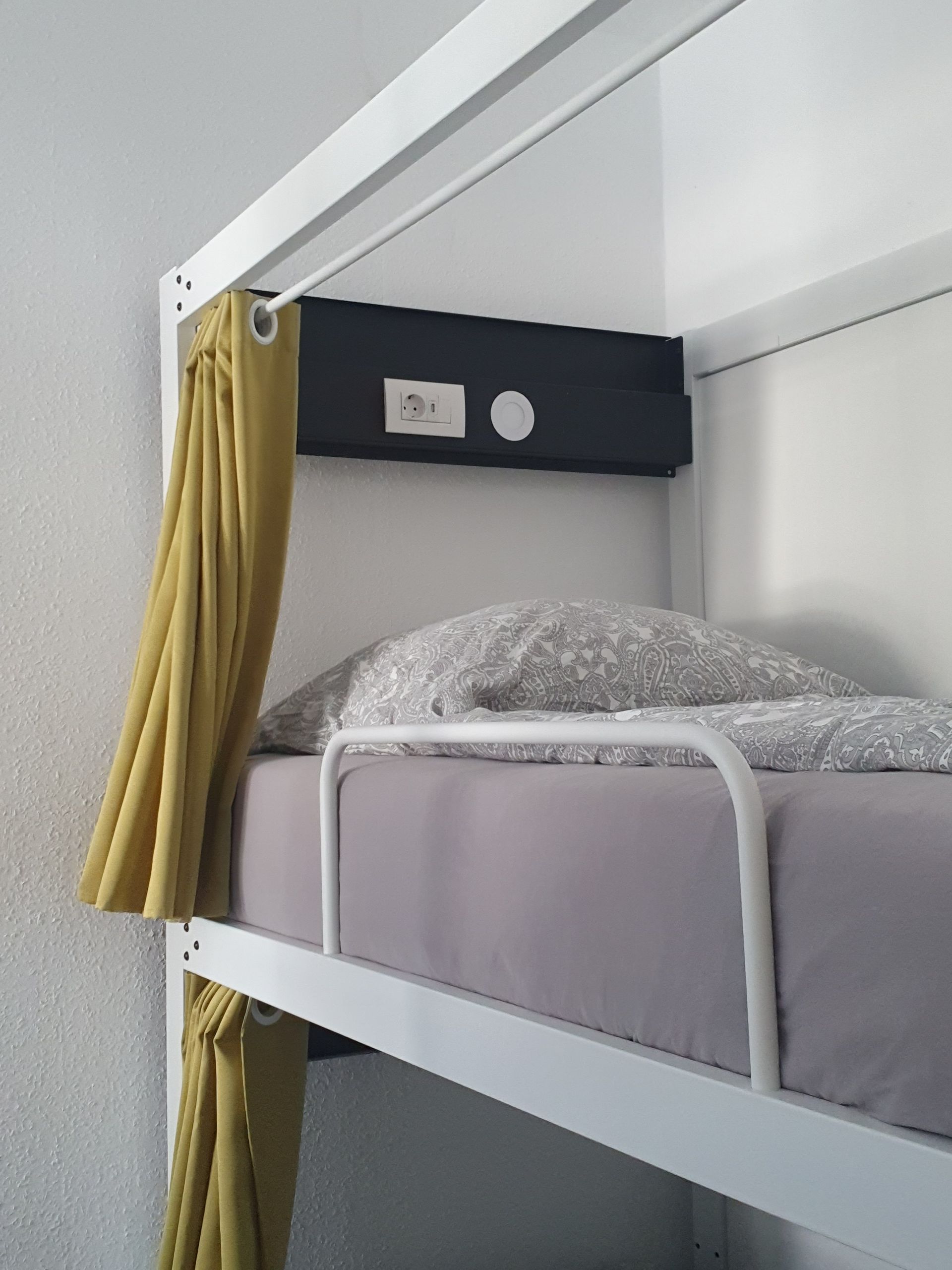 Enjoy a practical and cosy stay in this shared room. It features 2 bunk beds (4 beds total), each with its own power socket for charging your devices. There is also a drawer under each bed for extra storage.